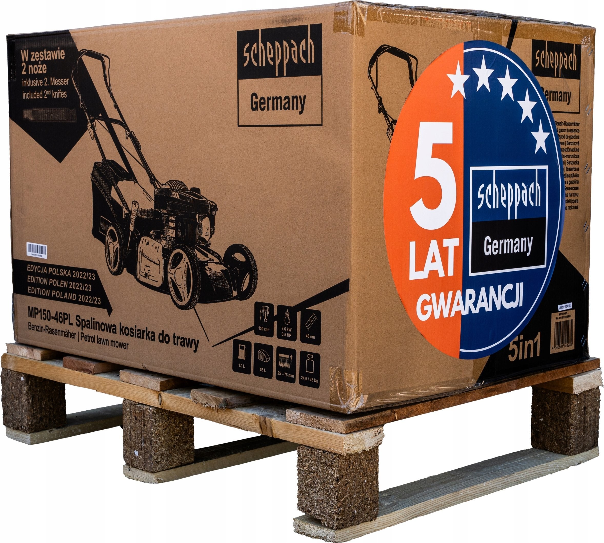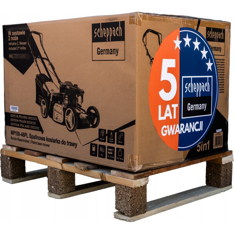 Der Scheppach MP132-42 wird mit zwei Messern geliefert – einem montierten und einem Ersatzmesser. So kann der Benutzer sicher sein, dass er auch bei Beschädigung eines der Messer weiterarbeiten kann, was den Komfort und die Effizienz beim Mähen erhöht.