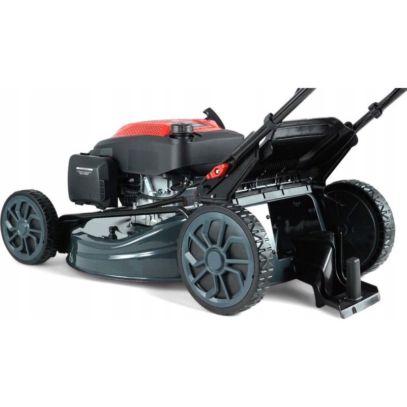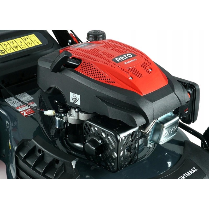 Ein sehr leistungsstarker Benzin-Rasenmäher mit Antrieb und einem zuverlässigen RATO-Motor mit einem Hubraum von 223 cm³ und einer Leistung von 4,2 kW. Die Maschine ist mit einem komfortablen elektrischen Motorstarter ausgestattet. Sie verfügt über Funktionen zum Sammeln des gemähten Grases in einem großen 60-Liter-Grasfangkorb sowie über Heck- und Seitenauswurf und Mulchfunktion. Die Schnittbreite beträgt bis zu 53 cm.