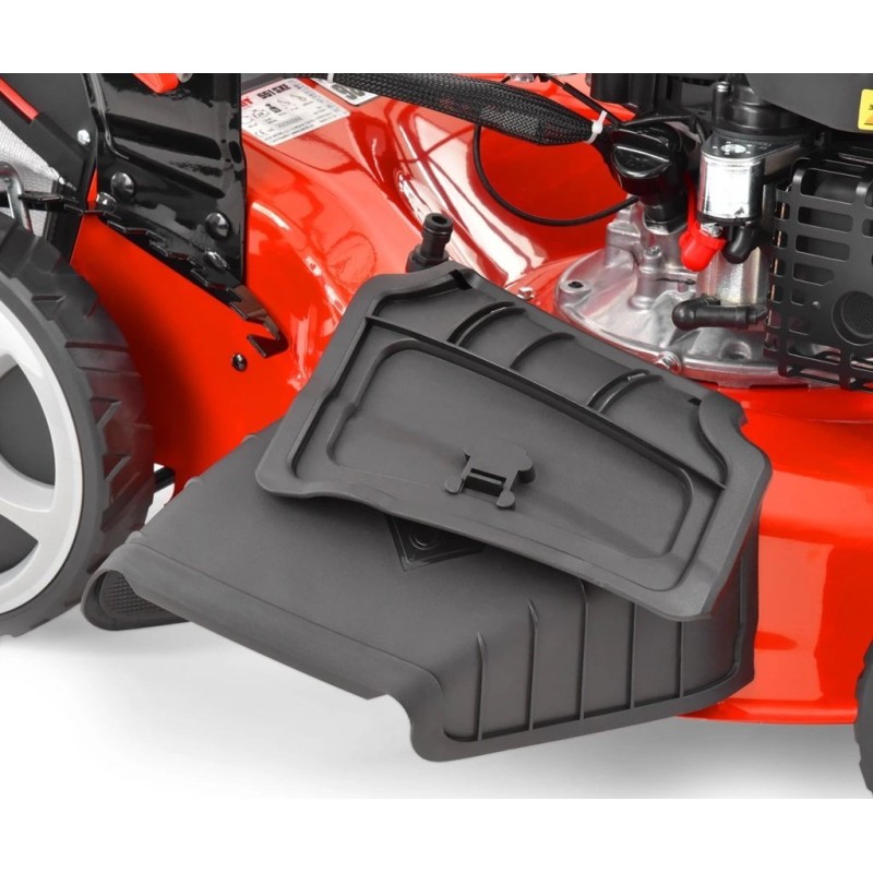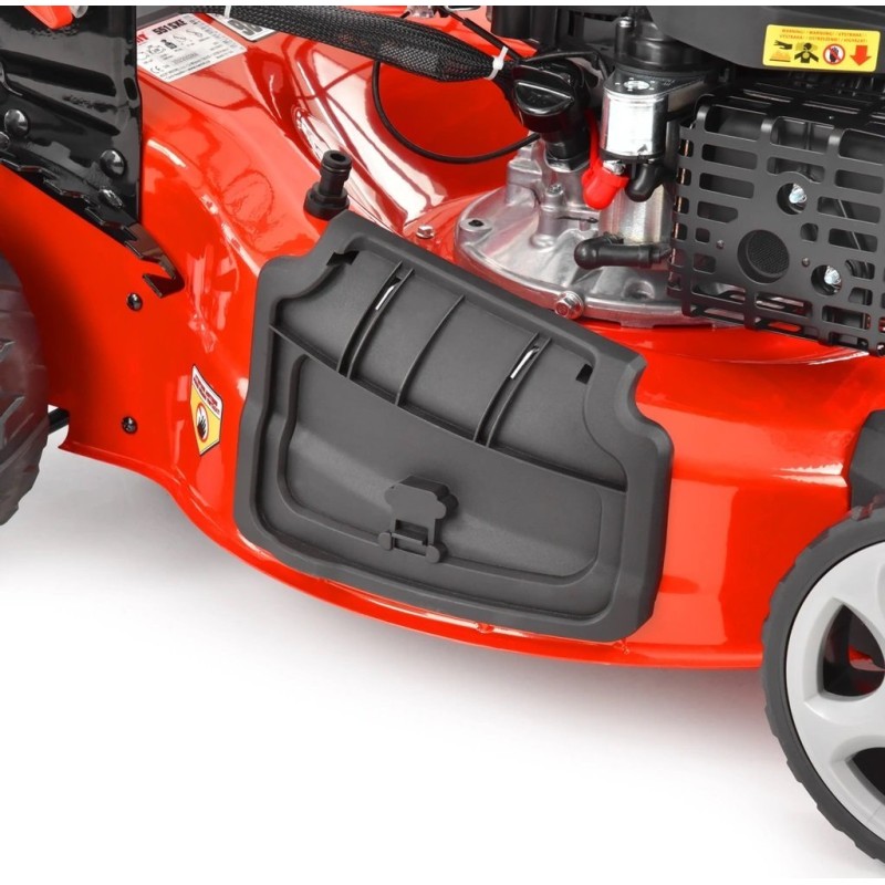 Der HECHT 551 SX ist ein leistungsstarker Rasenmäher mit einem HECHT-OHV-Benzinmotor mit 200 cm³ Hubraum, der per Knopfdruck – mit einem elektrischen Anlasser – gestartet wird. Dank des Radantriebs wird die Arbeit mit dem Rasenmäher einfach und angenehm. Der Rasenmäher ist mit einer zentralen Schnitthöhenverstellung ausgestattet