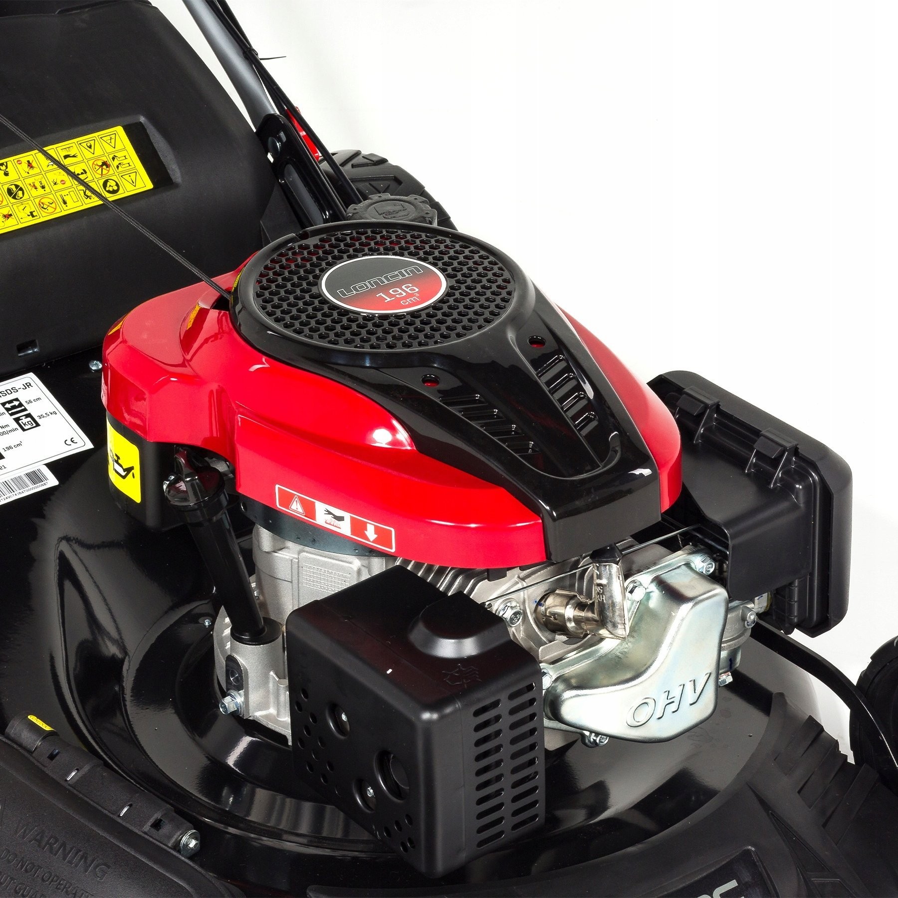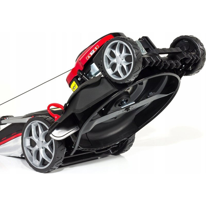 Der Rasenmäher wird von einem einzylindrigen Loncin-Viertaktmotor mit 196 cm³ Hubraum angetrieben, der eine Leistung von 4,9 PS (3,2 kW) erzeugt. Dank moderner Technologien erfüllt der Rasenmäher die europäischen Abgasnormen (EURO 5), was ihn umweltfreundlicher macht.