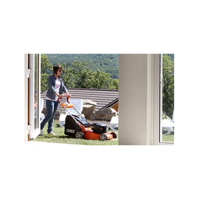 - Der am Griff angebrachte Hebel zur zentralen Einstellung der Schnitthöhe erleichtert dem Bediener die Steuerung.