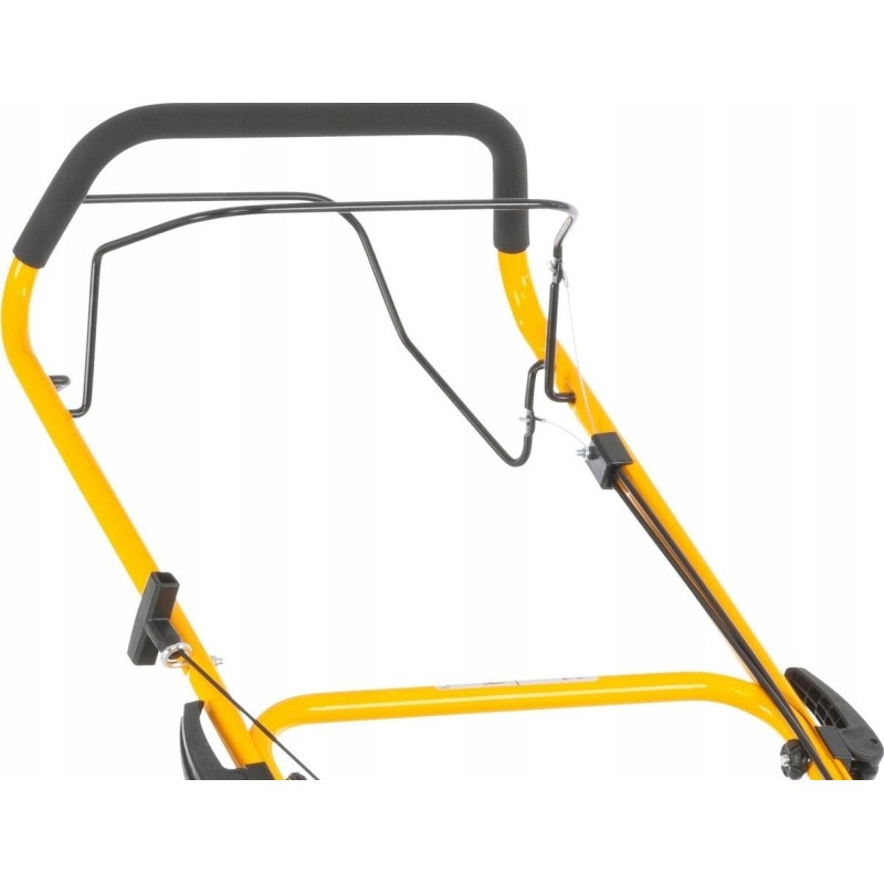 Müheloses Arbeiten und einfache Bedienung dank des ergonomisch geformten Griffs. Der Griff mit weichen Handschalen lässt sich durch eine stufenlose Verstellung an die Körpergröße jedes Benutzers anpassen, wodurch das Mähen bequem wird. Noch einfacher wird es durch den Radantrieb, der für optimalen Komfort beim Mähen sorgt.