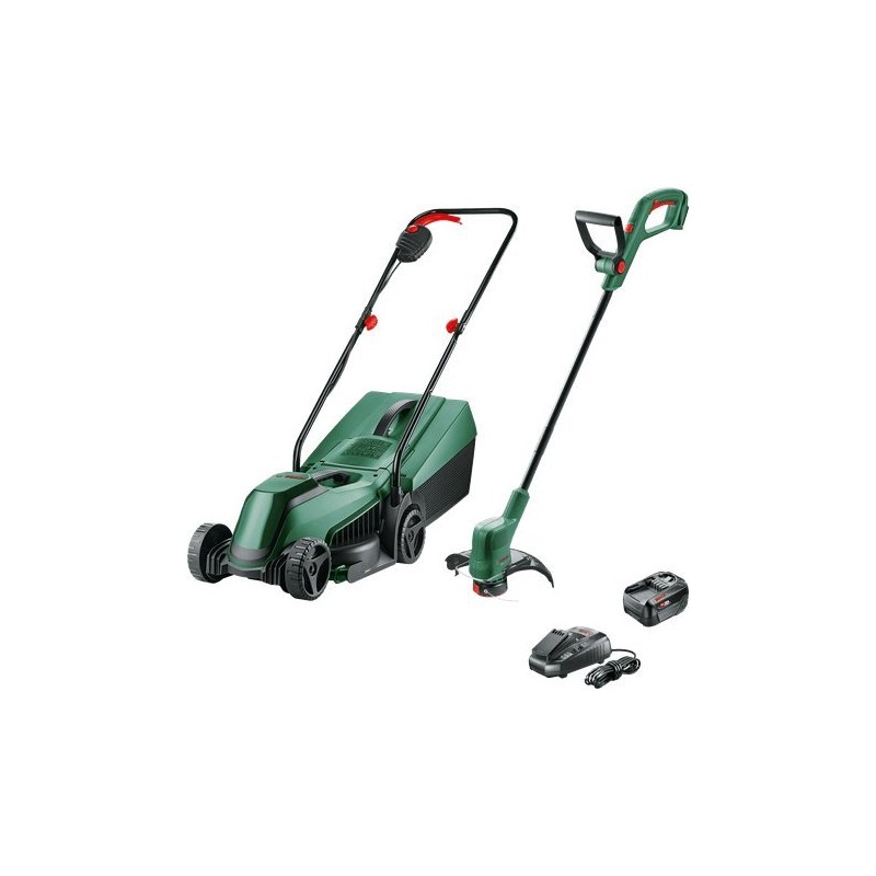 Im Lieferumfang enthalten sind nicht nur der Rasenmäher, sondern auch der Akku-Trimmer EasyGrassCut 18V-26, zwei 18-V-Akkus mit einer Kapazität von 4,0 Ah sowie das digitale Netzladegerät AL 1830 CV. Zusätzliches Zubehör wie ein Grasfangkorb und eine Spule mit Faden machen das Set zu einer umfassenden Lösung für die Gartenpflege.