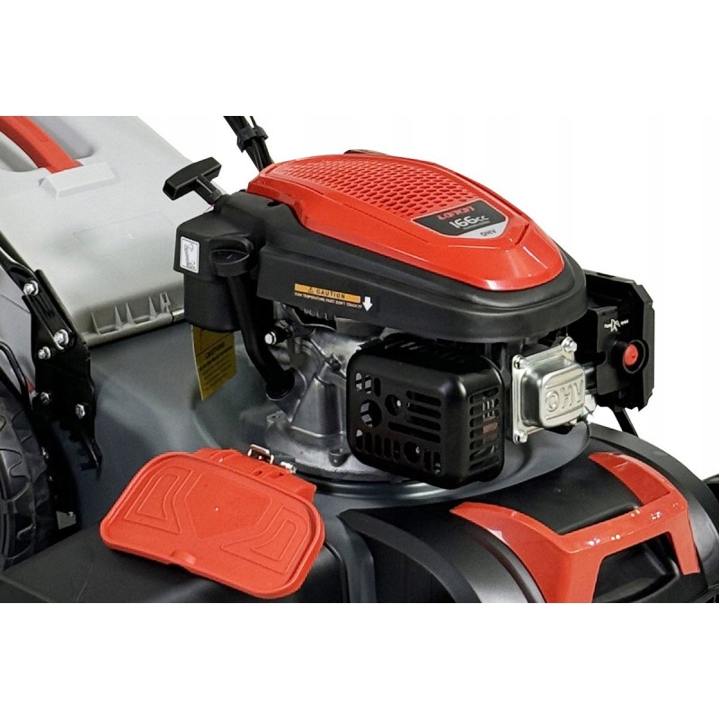 Ausgestattet mit einem LONCIN-Motor mit 166 cm³ Hubraum erzeugt der Rasenmäher eine Leistung von 2,9 kW, was ihm eine hervorragende Leistung verleiht. Dank eines maximalen Drehmoments von 9,5 Nm bewältigt das Gerät selbst schwierigere Bedingungen und garantiert ein gleichmäßiges und effizientes Mähen.