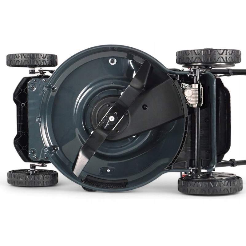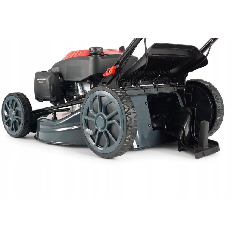 Der Rasenmäher wird von einem RATO-Motor mit 209 cm³ Hubraum und 4,0 kW Leistung angetrieben, was für hohe Leistung und Zuverlässigkeit sorgt. Die OHV-Technologie des Motors sorgt für einen geringeren Kraftstoffverbrauch und eine längere Lebensdauer, während die Zylinderlaufbuchse aus Gusseisen eine hohe Widerstandsfähigkeit garantiert.