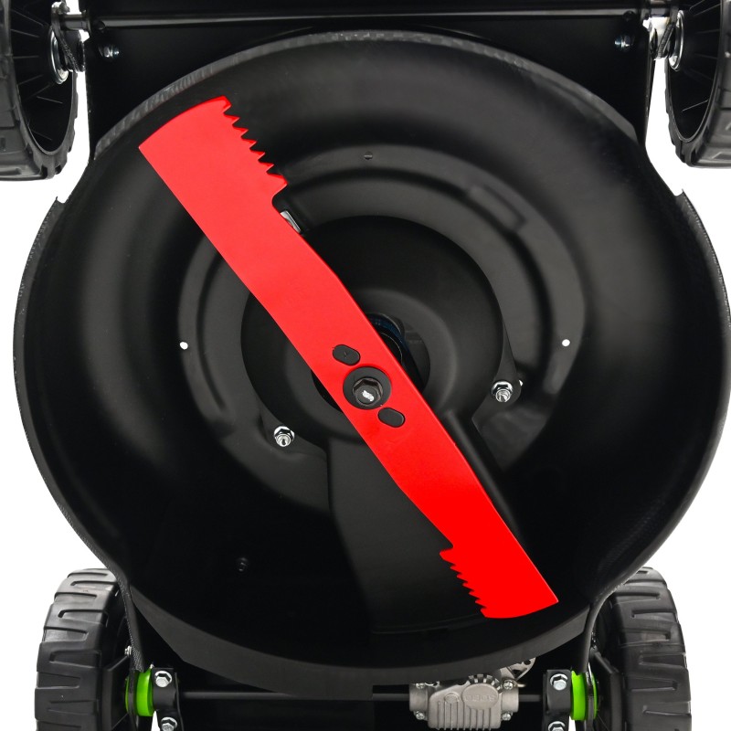 - Bessere Aerodynamik der RED-CUT-Klinge – verbessert die Luftzirkulation unter dem Gehäuse, was zu einer effektiveren Grasaufnahme in den Grasfangkorb oder zum Verteilen des Grases beim Mulchen unter dem Mäher führt.
