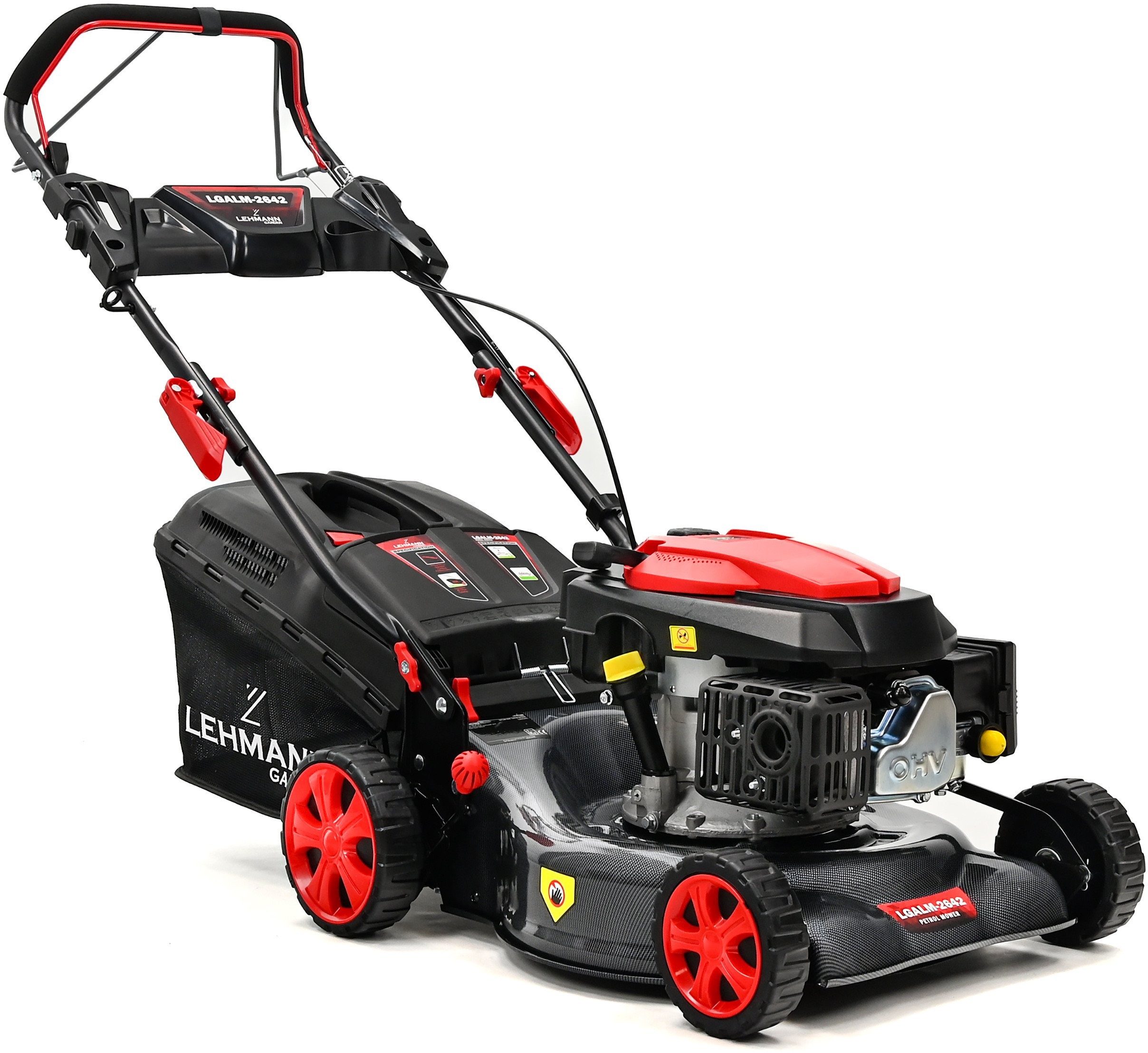 Entscheiden Sie sich für das neue Lehmann-Modell mit RED-CUT-Mähmesser! Das Modell Festuca zeichnet sich durch einen erstklassigen OHV-Motor der EURO-5-Norm, ein einzigartiges rotes Mähmesser mit verbesserten Schneideigenschaften, einen großen 40-Liter-Grasfangkorb, einen integrierten Antrieb und ein besonders robustes Gehäuse im Carbon-Look aus!