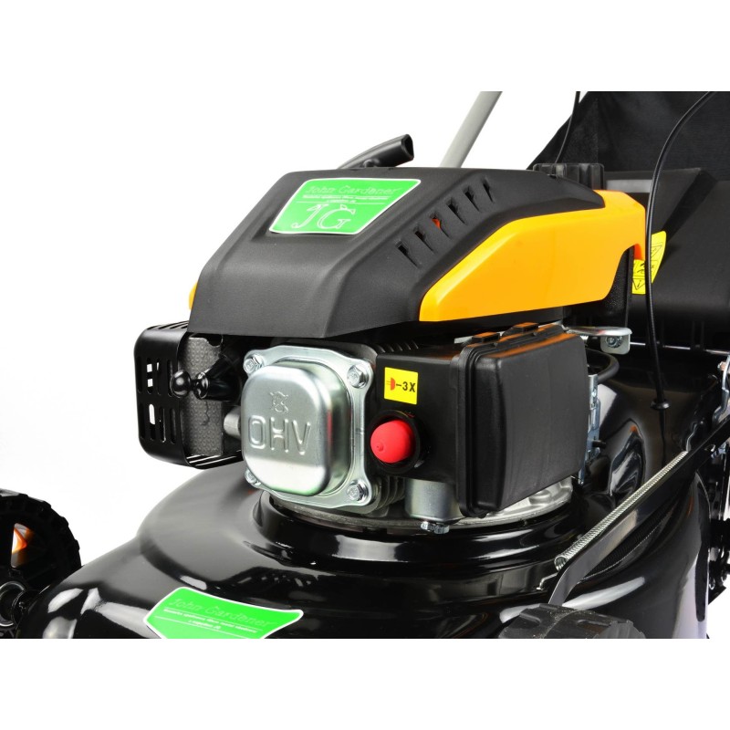 Der John Gardener Benzinrasenmäher mit der Artikelnummer G83055 ist ein Gerät mit einer Arbeitsbreite von 40 cm. Er verfügt über einen modernen Überkopf-Benzinmotor mit einer maximalen Leistung von 3,5 PS und einem Hubraum von 99 cm³. Er erreicht eine Drehzahl von 2800 U/min.