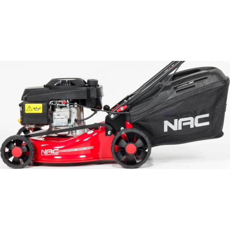 Der Benzinrasenmäher NAC LP42-146-NG ist mit einem modernen, obenventiligen Motor mit einem Hubraum von 146 cm³ und einem maximalen Drehmoment von 7 Nm sowie einer Zylinderlaufbuchse aus Gusseisen ausgestattet, der sich durch Zuverlässigkeit und einen sparsamen Kraftstoffverbrauch auszeichnet.