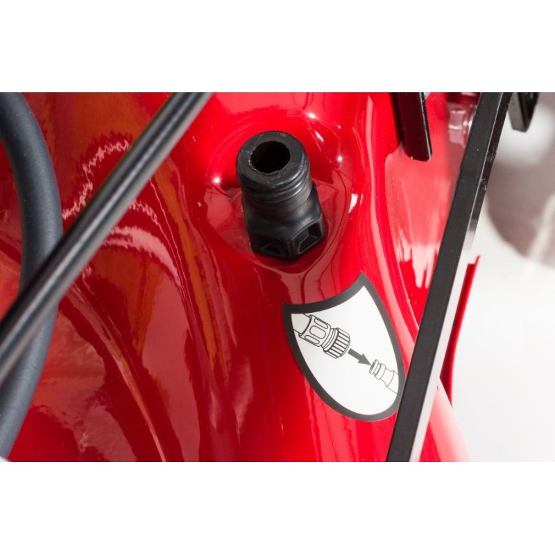 Das Gehäuse-Reinigungssystem ermöglicht eine einfache und schnelle Reinigung der Innenseite des Mähwerks. Schließen Sie dazu einfach einen Gartenschlauch an den Anschluss am Mähwerk an.