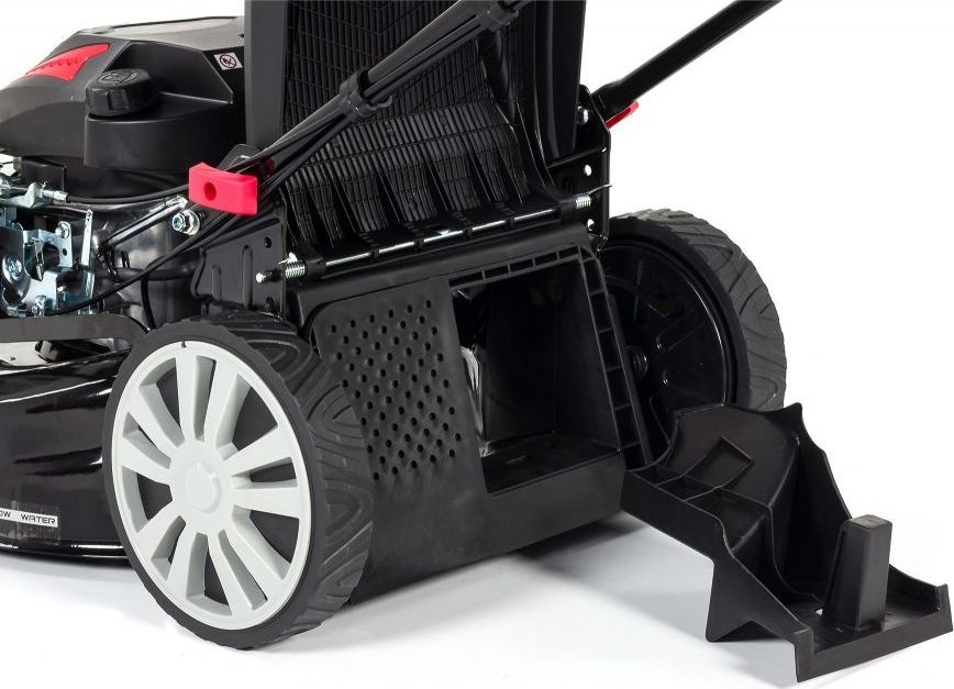 - Große, gelagerte Hinterräder mit einem Durchmesser von 25 cm verringern den Rollwiderstand und erleichtern die Führung des Mähers. Der Durchmesser der Vorderräder beträgt 18 cm.