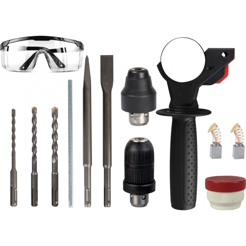 3x SDS+-Bohrer in den Größen: 6, 8, 10 mm 1x SDS-Meißel