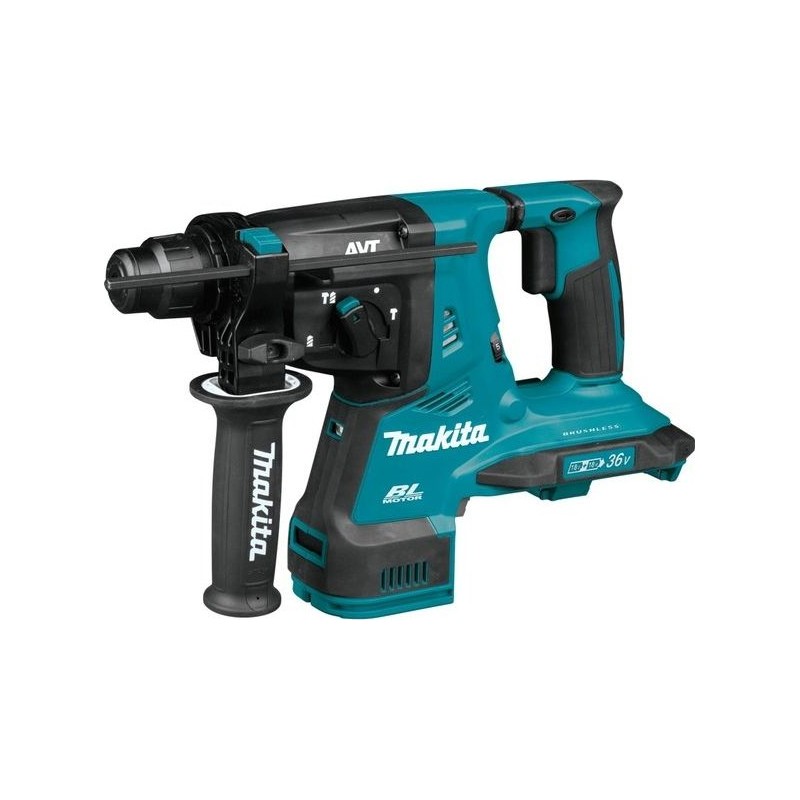Der Akku-Bohr- und Meißelhammer DHR282ZU von Makita wurde für die effektive, sichere und komfortable Ausführung von Bohr- und Meißelarbeiten entwickelt. Daher ist er mit den Technologien AWS, AFT, AVT und XPT sowie dem Soft-No-Load-System ausgestattet. Darüber hinaus wird der Bohrhammer von zwei 18-V-Lithium-Ionen-Akkus angetrieben, die eine lange und leistungsstarke Betriebszeit garantieren. Außerdem verfügt das Modell DHR283ZU über einen bürstenlosen Motor mit erhöhter Überlastfestigkeit sowie eine stufenlose und elektronische Drehzahlregelung für optimale Arbeitsergebnisse. Abgerundet wird das Ganze durch zwei integrierte LEDs mit Nachleuchtfunktion, einen seitlichen Zusatzgriff und einen Bohrtiefenanschlag.