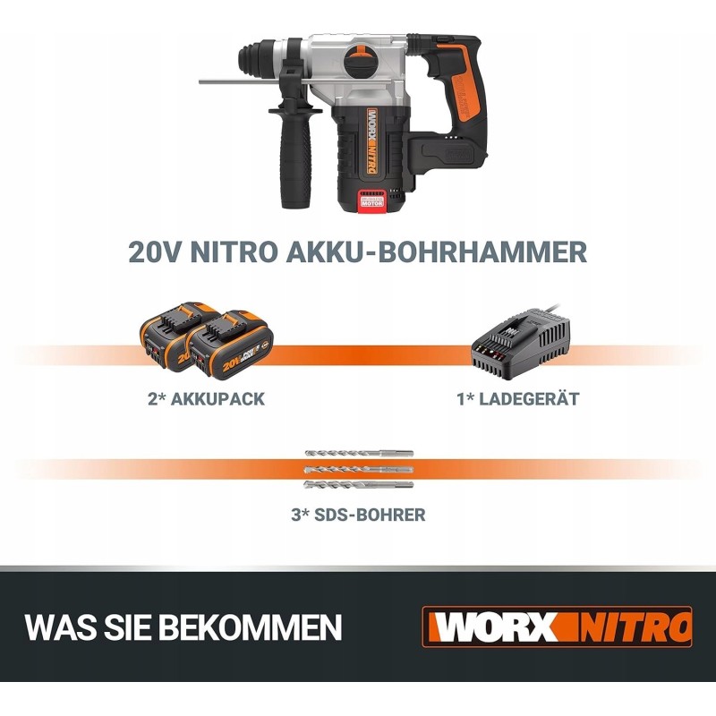 Bohrschrauber Worx Akku-Schlagbohrmaschine WORX NITRO WX380 20 V im Set mit 2x4 Ah