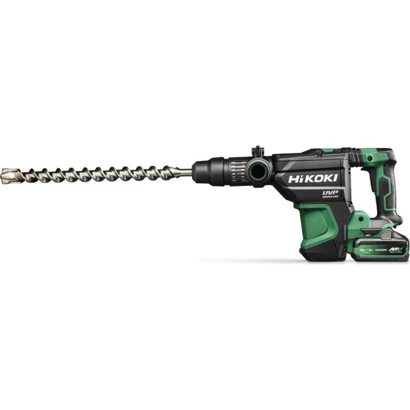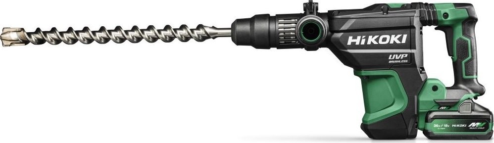 Hikoki DH3640DAWAZ. Spannart: SDS Max, Produktfarbe: Schwarz, Grün, Motor: Bürstenlos. Schlagenergie: 9,2 J, Leerlauf-Schlagfrequenz (min): 250 Schläge/min, Schlagfrequenz (max.): 500 Schläge/min. Stromquelle: Akku, Akkutechnologie: Lithium-Ionen (Li-Ion), Akkukapazität: 4 Ah. Produktbreite: 262 mm, Produkttiefe: 499 mm, Produkthöhe: 107 mm. Anzahl der enthaltenen Akkus: 2 Stück.