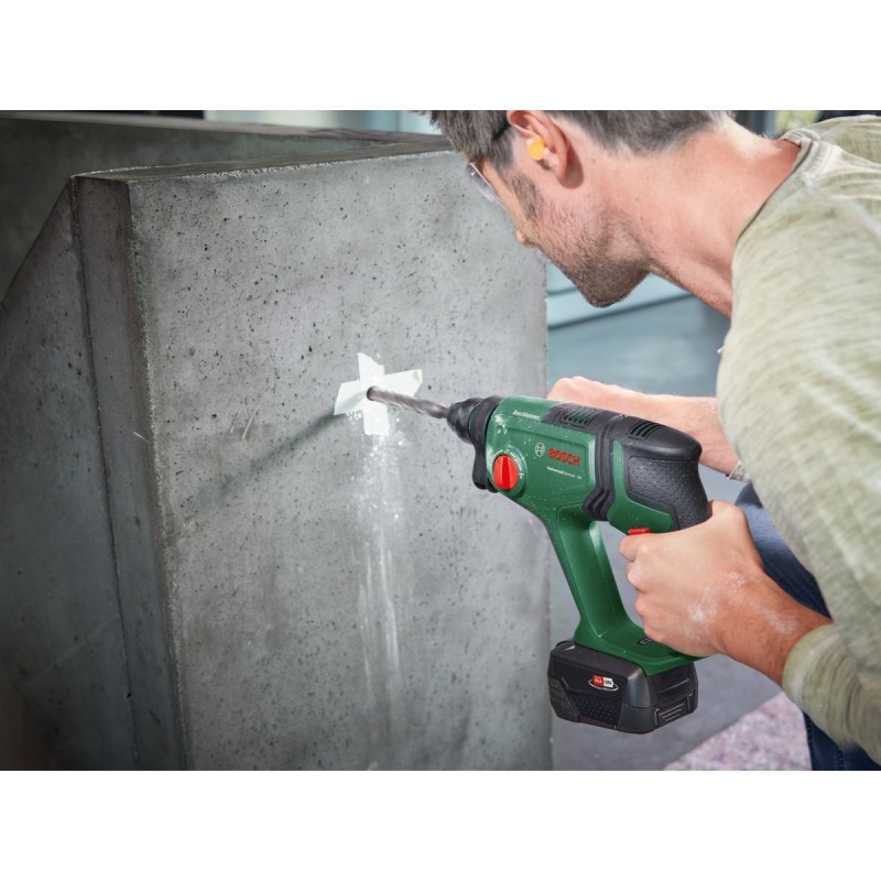 Der pneumatische Schlagmechanismus mit 2,0 J ermöglicht das Bohren von Löchern mit einem Durchmesser von bis zu 16 mm sowie das Meißeln in Beton