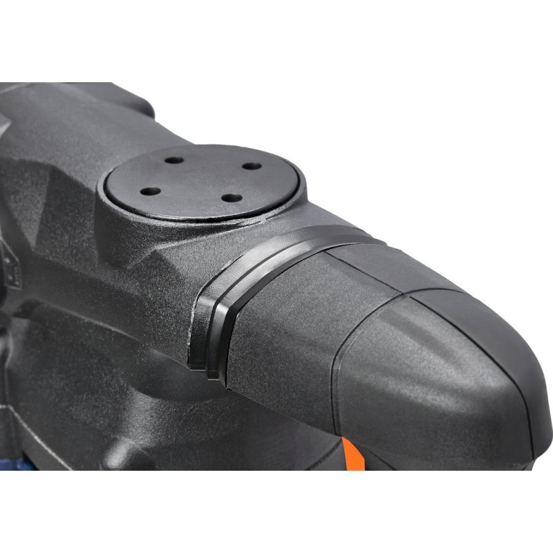 Der Dreh-Schlaghammer CELMA Professional PRWg 40GEO vereint hohe Leistung, große Schlagkraft und Funktionalität bei gleichzeitig außergewöhnlich geringem Gewicht. Das Gerät ist hauptsächlich für das Meißeln, schwere Abbrucharbeiten, Arbeiten im Zusammenhang mit der Installation von Wasser- und Abwasseranlagen, Zentralheizungen, Gas sowie für die Ausführung von Injektionsabdichtungen. Der Hammer ist mit einem SDS-Max-Aufnahme, einem Antivibrationssystem, einer Sicherheitskupplung, einer elektronischen Drehzahlregelung und einem großen, komfortablen Schalter ausgestattet. Das gesamte Set ist in einem robusten Koffer verpackt, der den Transport und die Lagerung erheblich erleichtert und zudem das Risiko einer versehentlichen Beschädigung des Elektrowerkzeugs und des Zubehörs verringert.