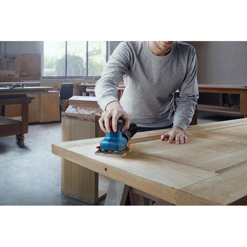 Das integrierte Staubabsaugsystem und der Staubbeutel von BOSCH garantieren eine hohe Absaugleistung des beim Schleifen aller Materialien entstehenden Staubs. Das integrierte Absaugmodul transportiert den Schleifstaub mit hoher Geschwindigkeit durch die Schleifscheibe und das Schleifpapier direkt in den angeschlossenen Staubbeutel.
