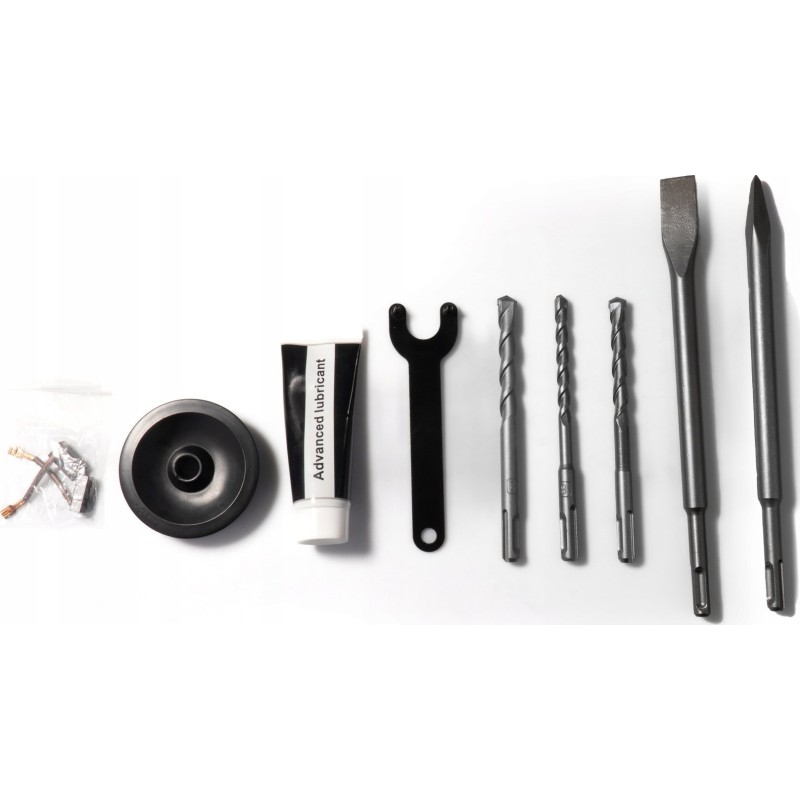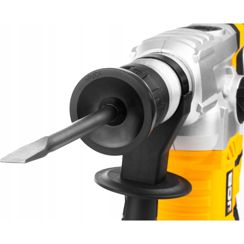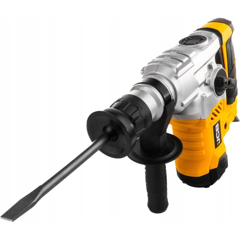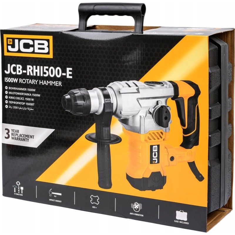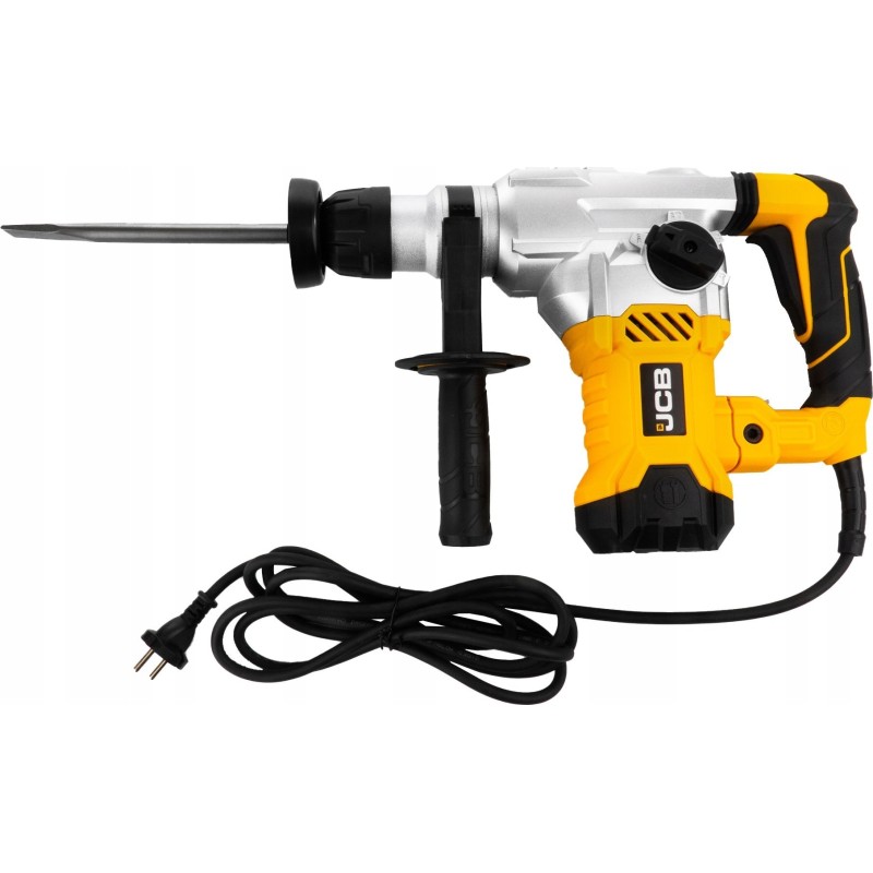 - Lieferumfang: Elektro-Schlagbohrmaschine JCB-RH1500-E, Bohrer mit den Durchmessern 8, 10 und 12 mm, Meißel (ein Flachmeißel und ein Spitzmeißel), Satz mit zwei Ersatz-Motorbürsten, Tube mit Schmierfett, Transportkoffer.