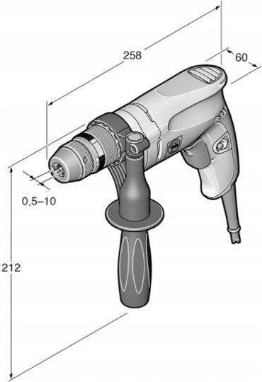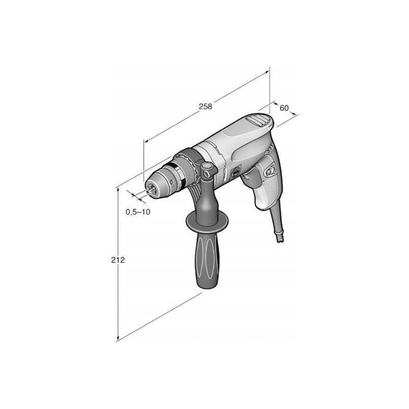 Bohrmaschine BOP 6 Fein 7 205 52 60 00 0 Handbohrmaschine bis 6 mm Hochdrehzahl-Ein-Gang-Bohrmaschine für Bohrungen bis 6 mm Durchmesser in Stahl, hohe Drehzahlstabilität, unverzichtbar bei der Metallbearbeitung. Drehrichtungsschalter. Präzisionsbohrfutter aus Metall. Hohe Drehgenauigkeit. Selbstspannende Spannbacken des Bohrfutters. Komfortabler FEIN-Handgriff. Elektronische Drehzahlsteigerung. 5 m langes Kabel. Befestigungshülse Ø 43 mm zur Befestigung in einem Bohrständer. Technische Daten: Leistungsaufnahme 500 W Nutzleistung 270 W Drehzahl unter Last 0 – 2.700 U/min Leerlaufdrehzahl 0 – 4.000 U/min Drehmoment bei max. Ausgangsleistung 3,5 Nm Anlaufdrehmoment 9 Nm Spannbereich des Bohrfutters 0,5 – 10 mm Bohrdurchmesser in Stahl 6 mm Bohrdurchmesser in Edelstahl 6 mm Bohrdurchmesser in Aluminium 10 mm Bohrdurchmesser in Holz 20 mm Gewinde der Bohrspindel 1/2 in-20 UNF Durchmesser der Spannhülse 43 mm Winkelmaß 23 mm Kabel mit Stecker 5 m Gewicht nach EPTA 1,70 kg Lieferumfang: 1 einhülsiges Schnellspann-Bohrfutter aus Metall SUPRA SKE 1 Zusatzfutter
