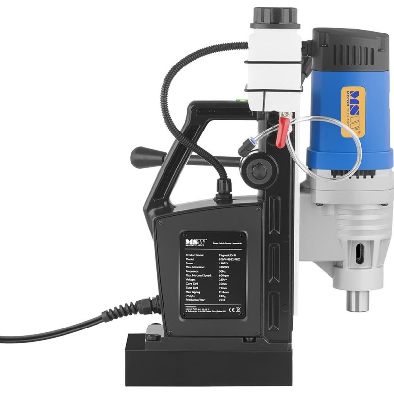 Die sichere Nutzung wird durch einen RCD-Magnetschalter gewährleistet, der vor Stromschlägen und versehentlichem Einschalten schützt. Die im Lieferumfang enthaltenen Sicherungen schützen den Stromkreis vor Überlastung . Zusätzlich wurde eine Sperre eingebaut, die ein Starten der Bohrmaschine verhindert, wenn der Elektromagnet ausgeschaltet ist.