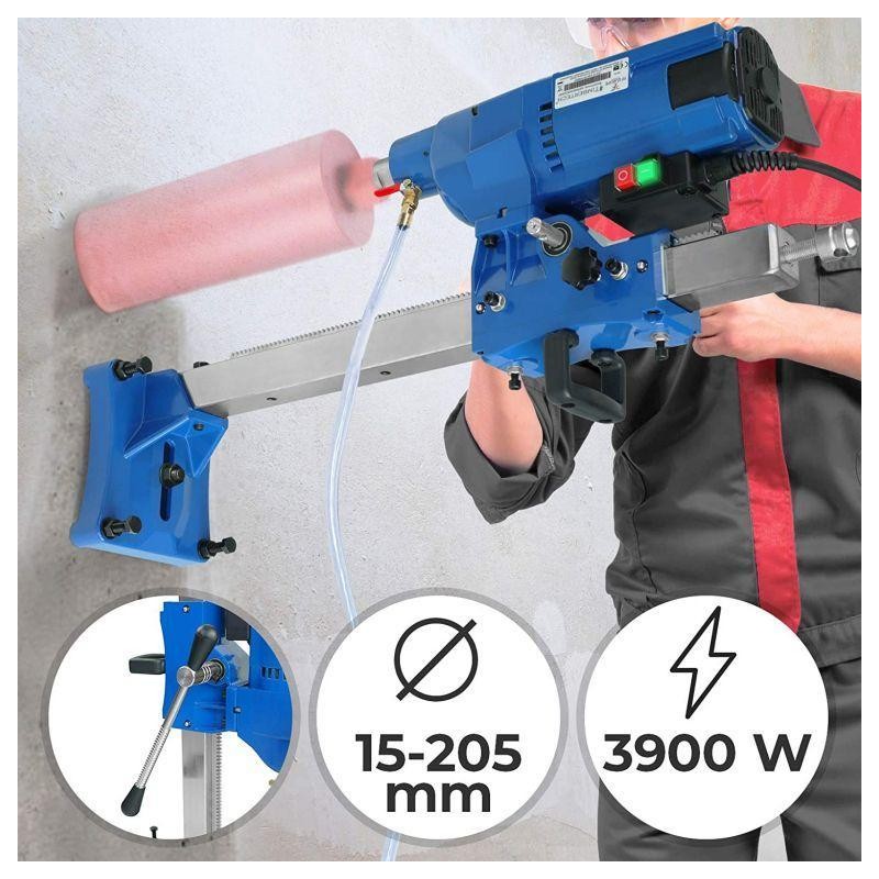 Wenn jedoch noch größere Aufgaben anstehen, beispielsweise bei Bau- oder Renovierungsarbeiten, muss eine Kernbohrmaschine zur Verfügung stehen. Sie ist stabil, robust und leistungsstark, wodurch sie sich optimal für Nass- oder Trockenbohrungen eignet und ideal zum Bohren in Kanälen, Beton oder Stahlbeton ist. Technische Daten: geeignet für Nass- und Trockenbohrungen Abmessungen: ca. 24/84/36 cm (B x H x T) Gewicht: ca. 21 kg Bohrlochdurchmesser: ca. 15–205 mm Werkzeugaufnahme: ca. 1 Zoll Nennspannung: 220–240 V Frequenz: 50 Hz Leistungsaufnahme: ca. 3900 W Drehzahl: ca. 580 U/min Geräuschpegel (Schalldruck): bestimmt / K = 3 dB(A) 88,6 dB(A) Geräuschpegel: bestimmt / K = 3 dB(A) 101,6 dB(A) Kabellänge: 3,5 m Länge des Wasserschlauchs: 3 m Material: Metalllegierung, Kupfer, Kunststoff Lieferumfang: 1 x Kernbohrmaschine