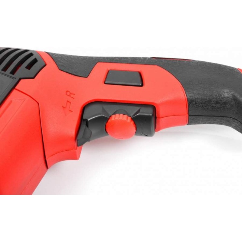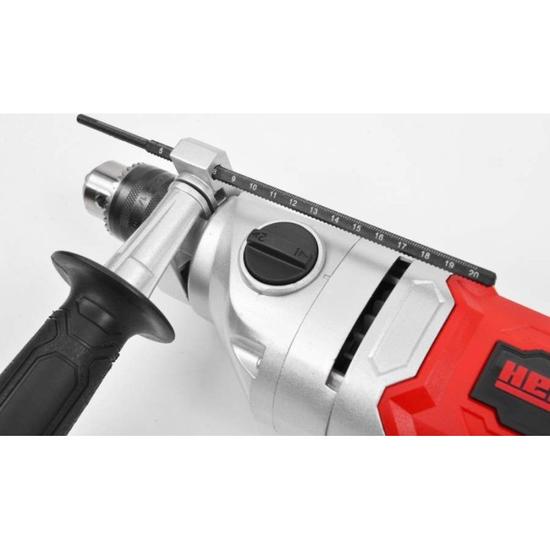 Die Schlagbohrmaschine Hecht 1074 verfügt über einen verstellbaren, ergonomisch geformten Griff, der das Halten erleichtert und sich positiv auf die Effizienz, den Komfort und die Arbeitssicherheit auswirkt.Zum Arbeitskomfort trägt auch der in der Bohrmaschine eingebaute Schalter mit Drehzahlsperre bei, dank dem wir das Gerät während des Gebrauchs nicht ständig festhalten müssen.