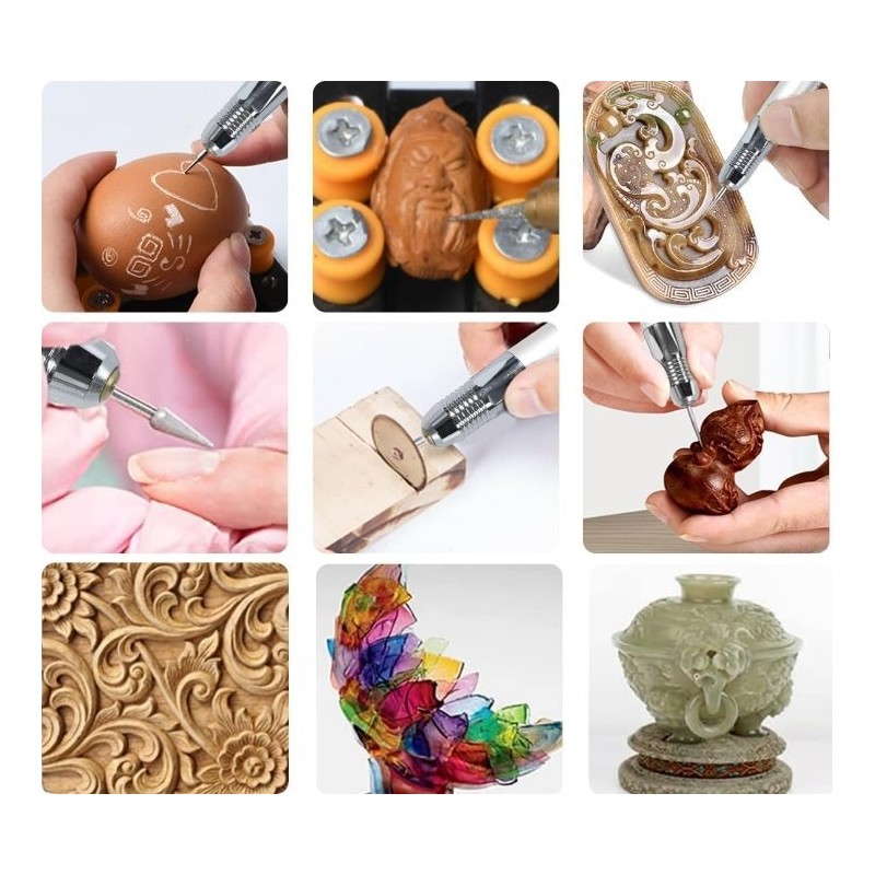 VIELSEITIGE ANWENDUNGEN: Unser elektrischer Gravurstift ermöglicht das Gravieren, Schleifen, Polieren, Bohren, Schneiden und vieles mehr auf Metall, Leder, Holz, Schmuck, Stein oder Skulpturen; du kannst auch auf Glas, Keramik und anderen Oberflächen arbeiten. Schleifen und Gravieren sind äußerst vorteilhaft.