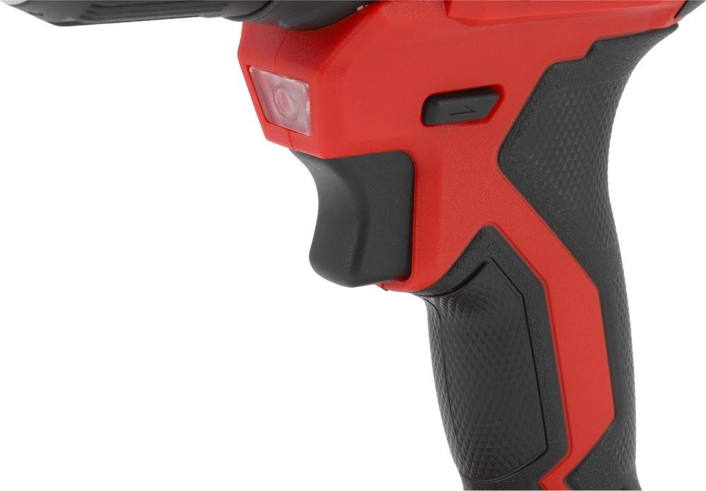 Die Bohrmaschine ist mit einer praktischen LED-Beleuchtung ausgestattet, die das Arbeiten an schlecht beleuchteten Orten erleichtert. Dadurch hat der Benutzer auch unter schwierigen Bedingungen die volle Kontrolle über die ausgeführte Aufgabe.