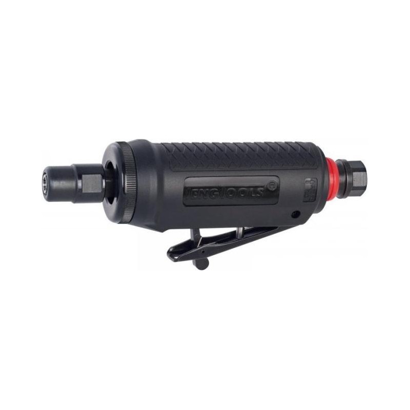 Einfaches Modell in Mini-Ausführung für Hochgeschwindigkeitsfräser (Rotationsfeilen) und Schleifstifte. Für Schaftdurchmesser von 3 und 6 mm sowie 1/4". Mit rückseitiger Luftabführung, Sicherheitsauslöser und Drehzahlregelung. Ausgestattet mit einem ergonomischen Gummigriff, der vor Kälte und Vibrationen schützt und dem Anwender Arbeitskomfort bietet. Einfach zu bedienen an schwer zugänglichen Stellen. Lieferung mit Spannhülsen 3 und 6 mm sowie 1/4"....