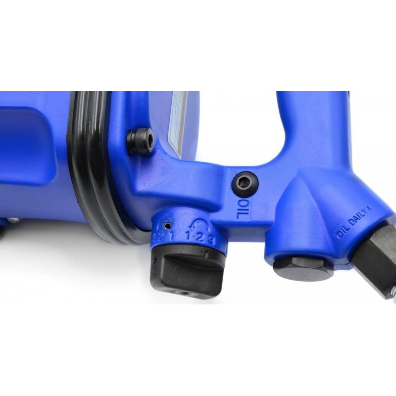 Professioneller Druckluftschrauber GEKO 4800 Nm. Ausgestattet mit einem externen Schalter im D-förmigen Griff. Der Lufteinlass ist in einem Winkel von 45° angeordnet, um die Arbeit zu erleichtern und die Sicherheit bei der Verwendung zu erhöhen. Der Schraubenschlüssel ist für industrielle Arbeiten, sehr anspruchsvolle Einsätze, Werkstattanwendungen und überall dort konzipiert, wo hohe Leistung erforderlich ist. Produktmerkmale: hohes Drehmoment von 4800 Nm, einfacher Schlagmechanismus, wartungsfreundlicher „Rocking Dog“-Schlagmechanismus, dessen Hauptvorteil die hohe Belastbarkeit und Stabilität ist. Der Schraubenschlüssel ist für industrielle Arbeiten, sehr anspruchsvolle Dienstleistungen, Werkstattanwendungen und überall dort konzipiert, wo hohe Leistung erforderlich ist. Maximale Steckschlüsselgröße: 48 mm Technische Daten Maximales Drehmoment: 4800 Nm Einstellung zum Lösen/Anziehen: 3-stufiges Anziehen, 3-stufiges Lösen Drehzahl: 3800 U/min Eingangsdurchmesser: 1/2" Steckschlüsselaufnahme: 1" Im Lieferumfang enthaltenes Zubehör: Schnellkupplung 1/2", Inbusschlüssel