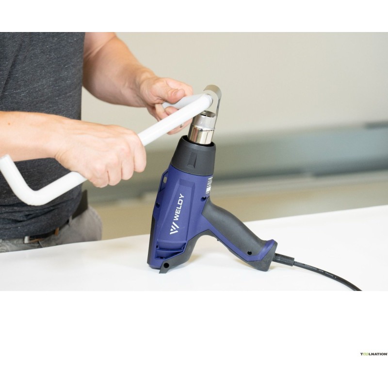 Technische DatenDie Pistole wiegt nur 750 g und ist mit einem ergonomischen Griff ausgestattet, was sie komfortabel in der Anwendung macht. Sie enthält ein umfangreiches Zubehörset, darunter verschiedene Düsen und eine Andruckrolle.