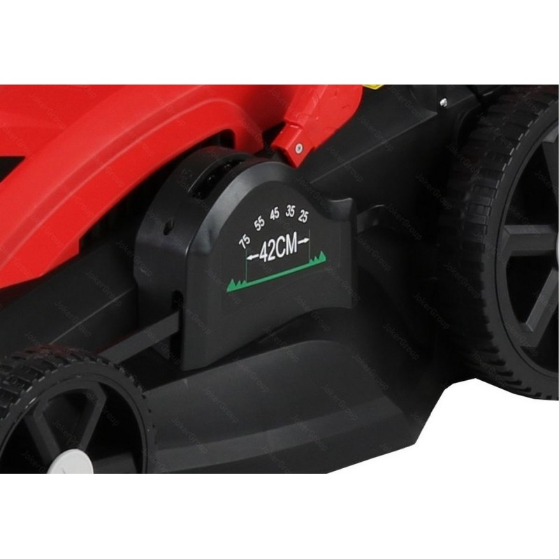 Der Rasenmäher ist mit einem modernen Induktionsmotor ausgestattet, der sich durch eine hohe Nennleistung von 1800 W auszeichnet – da er keine Bürsten hat, ist dieser Motor leiser und wesentlich weniger störanfällig als ein Kommutatormotor. Der Einsatz eines bürstenlosen Motors sorgt für eine Verringerung der Stromstärke, die Wärme erzeugt – der Temperaturanstieg am Gehäuse wird selbst bei schwerer Beanspruchung im Garten reduziert. Zudem ist er praktisch störungsfrei, unterliegt keinem mechanischen Verschleiß, hat einen einfacheren Aufbau und weist einen hohen Wirkungsgrad auf – ein großes Verhältnis von Drehmoment zu Motorgewicht. Ein großer Vorteil des Geräts ist die Art und Weise, wie es gestartet wird – Sie müssen lediglich den Gashebel gedrückt halten und die „START“-Taste drücken, und schon macht sich Ihr Rasenmäher mit Schwung an die Arbeit im Garten! Der elektrisch angetriebene Rasenmäher eignet sich ideal zum Mähen von Hanglagen.