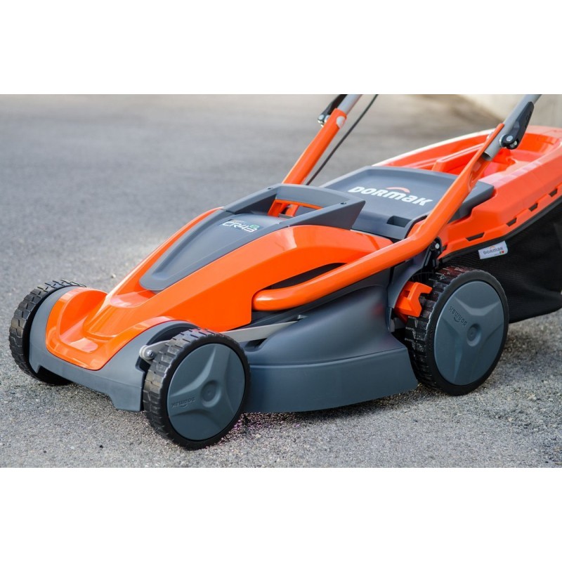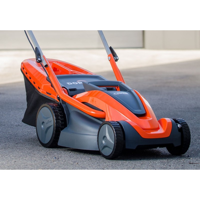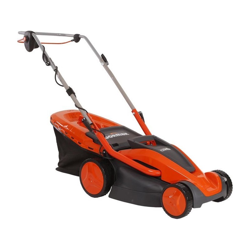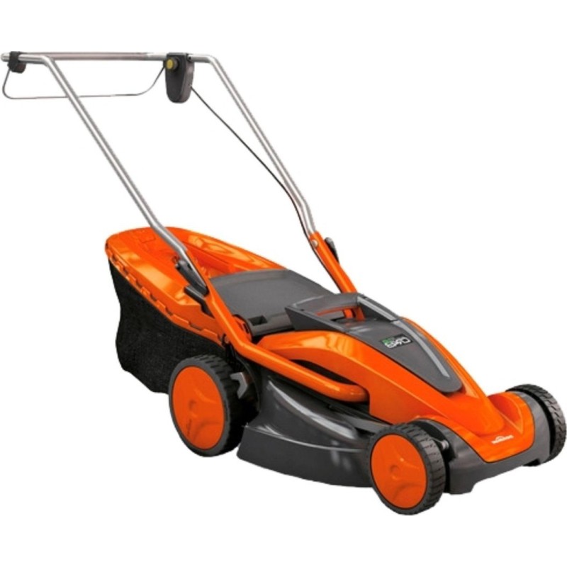 Professioneller elektrisch angetriebener Rasenmäher. Leistungsstarker Motor – 1600 W. Große Schnittbreite – 43 cm. Robustes Gehäuse aus Kunststoff. Zentraler Schnitthöhenversteller. Großer Grasfangkorb wie bei einem Benzinrasenmäher.