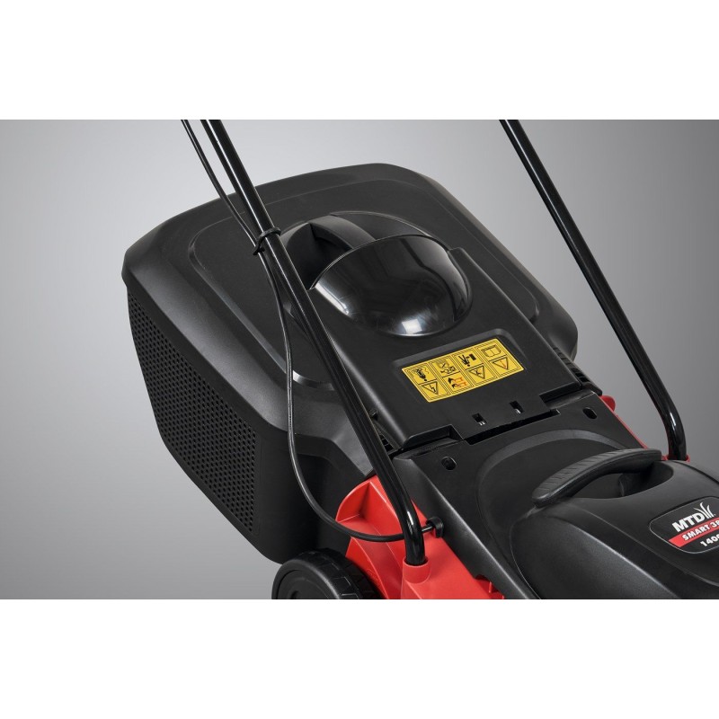 Motortyp: elektrisch, mit Bürsten. Nennleistung des Motors: 1400 W. Schnittbreite: 38 cm. Maximale Arbeitsfläche: 300 m². Antriebsart: Handantrieb. Funktionen: Heckauswurf, Auswurf in den Grasfangkorb (2-in-1). Schneidhöhenverstellung: 3-stufig. Art der Höhenverstellung: jedes Rad separat. Minimale Schnitthöhe: 20 mm. Maximale Schnitthöhe: 60 mm. Gehäuse: Kunststoff. Fassungsvermögen des Grasfangkorbs: 40 l. Art des Grasfangkorbs: Kunststoff. Füllstandsanzeige: nein.