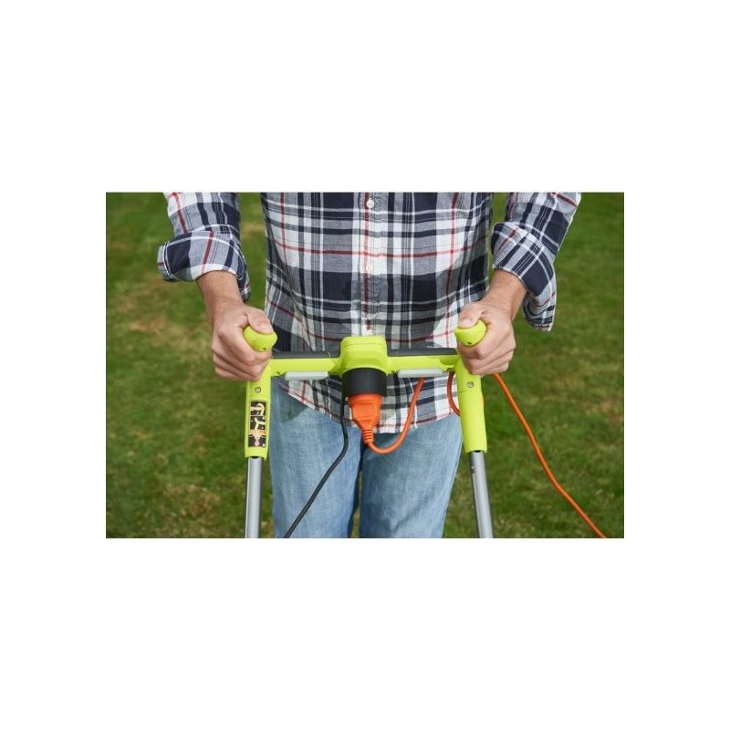 Der Rasenmäher RLM18E40H von Ryobi verfügt über einen extrem leistungsstarken 1800-W-Motor. Die Schnittbreite von 40 cm ermöglicht ein effizientes Mähen des Rasens. Mähen bis an den Rand des Rasens dank der EasyEdge™-Funktion. Einpunkt-Höhenverstellung in 5 Stufen von 20 mm bis 70 mm. Die Griffhöhe ist verstellbar und lässt sich an jeden Benutzer anpassen. Vertebrae™-Griff für mehr Arbeitskomfort. Der klappbare Griff und der klappbare Grasfangkorb erleichtern die Aufbewahrung. Grasfangkorb mit 50 l Fassungsvermögen.