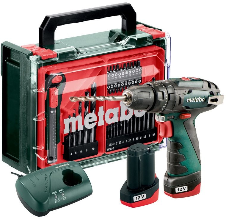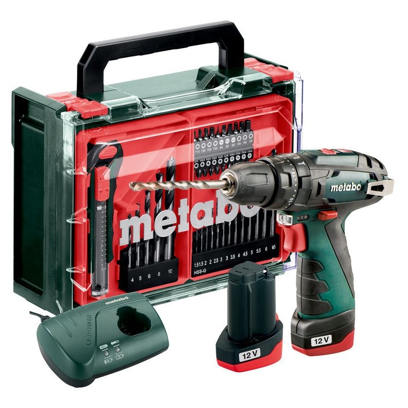 METABO.PowerMaxx SB Basic Set Mobile Werkstatt + 2 Li-Ionen-Akkus 12 V/2,0 Ah mit Ladegerät LC 40 + 41 Teile