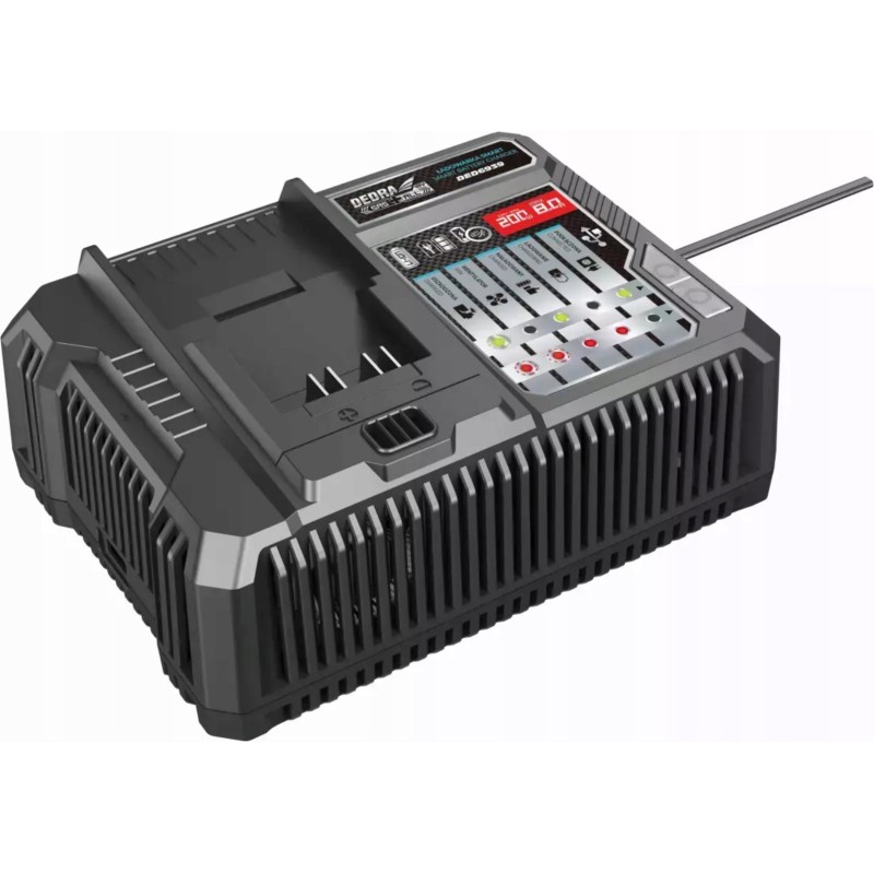 Dieses SMART-Ladegerät ist speziell für das Laden von Akkus der DEDRA SAS+ALL-Serie (DED7032, DED7034, DED7035, DED6936, DED6937) konzipiert. Ausgestattet mit einem Lüfter kühlt es die Batterie während des Ladevorgangs effektiv, was die Zellen wirksam vor Überhitzung schützt und sich positiv auf die Lebensdauer der Batterie auswirkt.