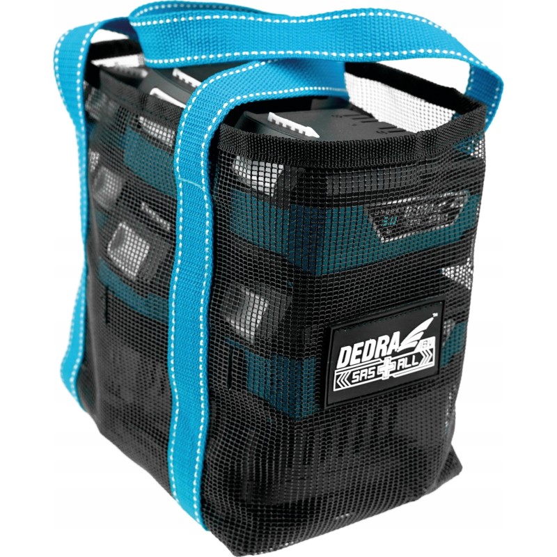 Tasche, Schutzhülle für zwei Akkus und ein Ladegerät DEDRA SAS+ALL DED7002A: Tasche/Etui zum Transport von Akkus und Ladegeräten des SAS+ALL-Systems. Hergestellt aus leichtem Netzgewebe und Riemen, die als Griffe dienen. Das geringe Gewicht und das verwendete Material ermöglichen eine problemlose Aufbewahrung der Tasche an jedem Ort. Die Tasche ermöglicht den Transport von beispielsweise einem Ladegerät und bis zu sechs Akkus DED7034/DED7035.