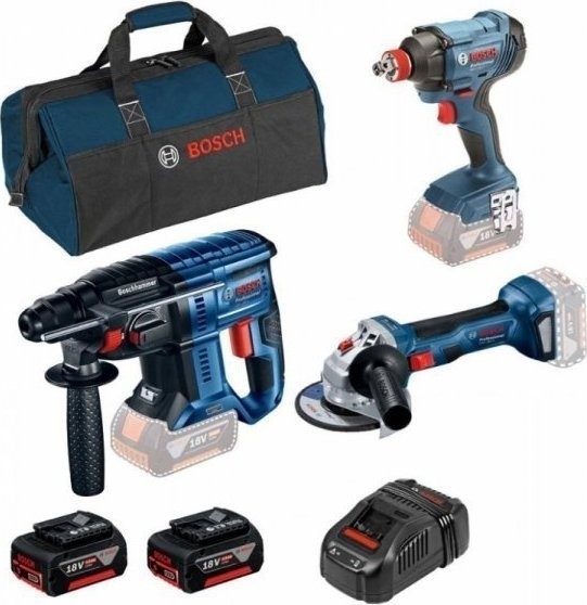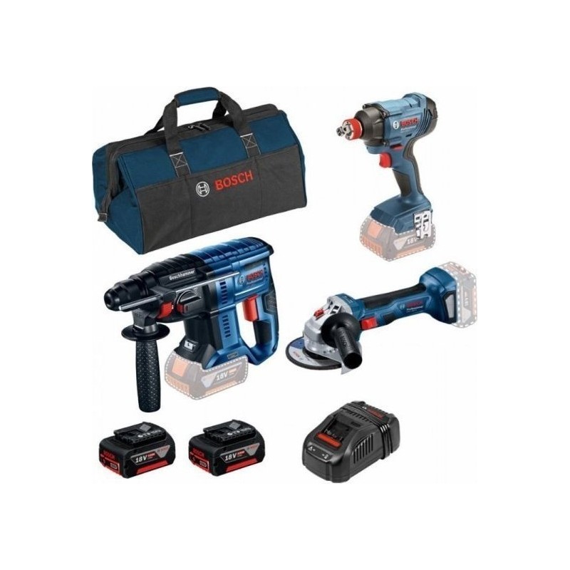 Bosch-Elektrowerkzeugset SET BOSCH GBH180 + GWS180 + GDX180 + 2x 5,0-Ah-Akku + GAL1880CV