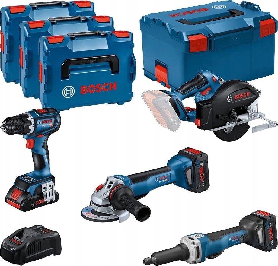 BOSCH.COMBO SET 18 V (GSR 18V-90C + GWS 18V-15 PSC + GKM 18V-50 + GGS 18V-23 PLC) 1xPC4,0Ah 2xPC5,5Ah ...