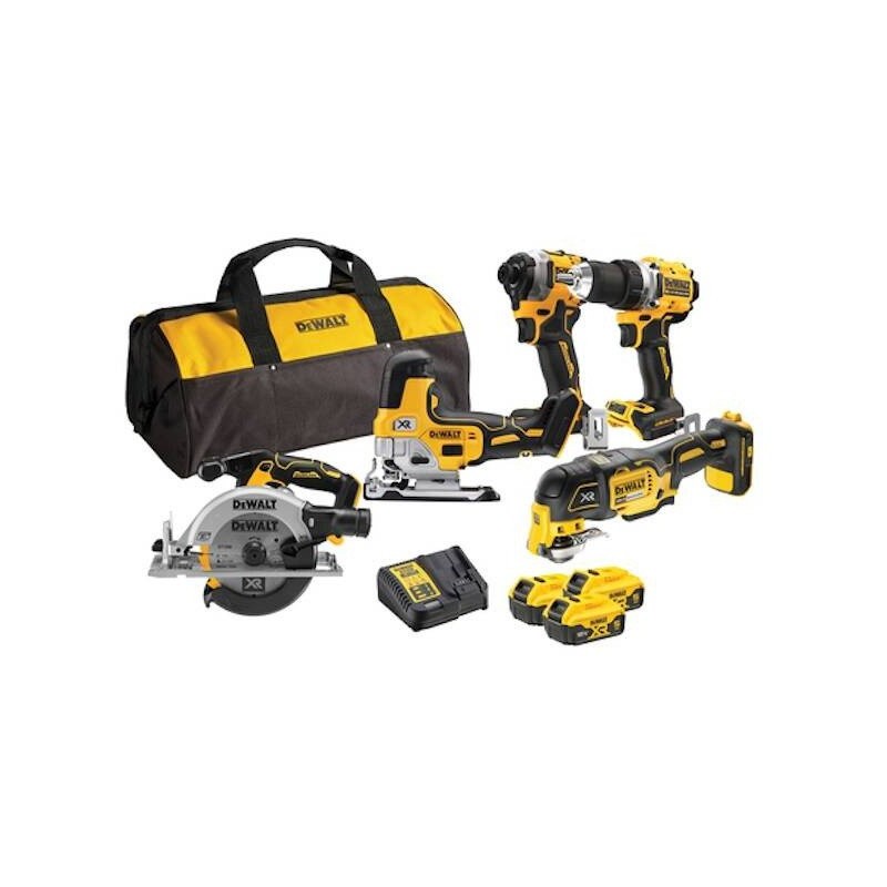 Das Set umfasst: den leistungsstarken Bohrschrauber Dewalt DCD800, den kompakten Schlagschrauber Dewalt DCF850, das vielseitige Multifunktionswerkzeug Dewalt DCS355, die leistungsstarke Kreissäge Dewalt DCS565 sowie die präzise Stichsäge Dewalt DCS335. Alle Werkzeuge sind vollständig kompatibel mit dem Dewalt 18-V-Akkusystem, was eine einfache Integration mit anderen Geräten dieser Plattform gewährleistet. Drei Akkus mit einer Kapazität von 5,0 Ah garantieren einen langen Betrieb, und das Universal-Ladegerät ermöglicht ein schnelles und bequemes Aufladen. Das gesamte Set wird in einer praktischen Tragetasche geliefert, die die Aufbewahrung und den Transport des gesamten Sets erleichtert.