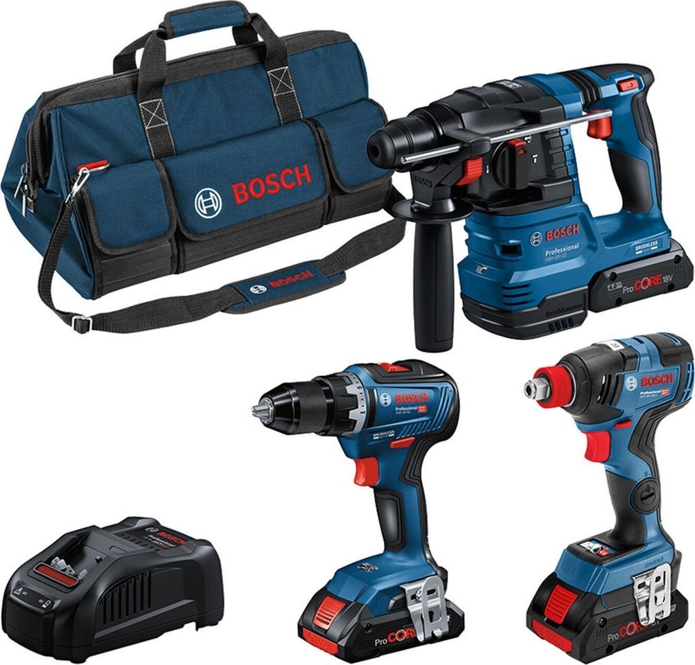 Das Set umfasst: den Bohrschrauber GSR 18V-55, den Schlagschrauber GDX 18V-200 und den Bohrhammer GBH 18V-22. Jedes dieser Werkzeuge zeichnet sich durch hohe Leistung und Effizienz aus, wodurch die Arbeit nicht nur einfacher, sondern auch angenehmer wird. Das Set wird in einer praktischen Tasche geliefert, was den Transport und die Aufbewahrung erleichtert.