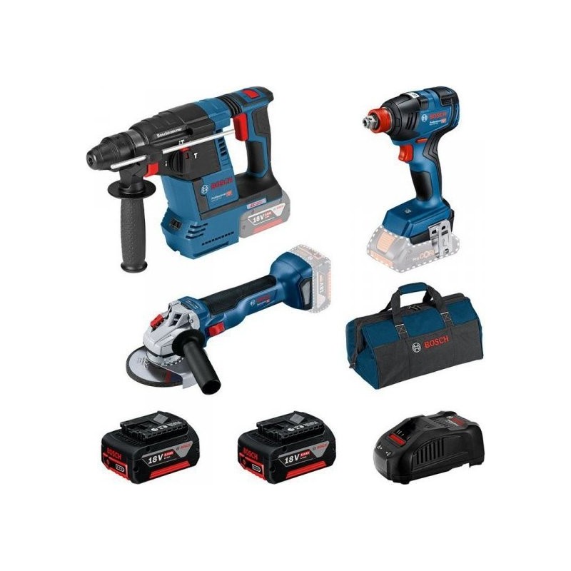 Bosch-Elektrowerkzeugset SET BOSCH GBH 18V-26 + GDX 18V-200 + GWS 18V-10 + 2XAKU 5,0 Ah + GAL 1880CV + TASCHE