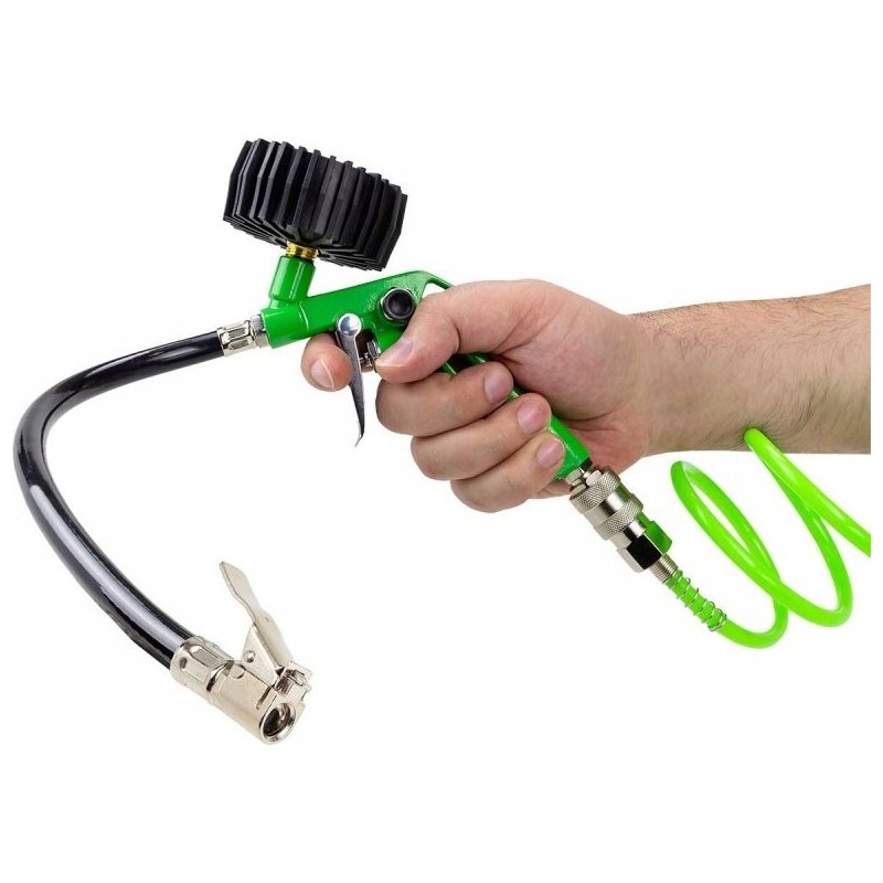 - Das Manometer mit Gummihülle ermöglicht die Überprüfung des Reifendrucks und die Durchführung eventueller Arbeiten zum Aufpumpen oder Ablassen von Luft