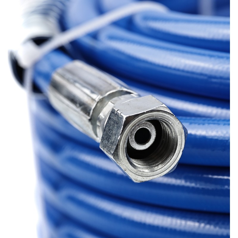 Dank dieser Eigenschaften ist dieser 8 m lange blaue Schlauch für Farbspritzgeräte aus TPU-Faser ein unverzichtbares Werkzeug, das Langlebigkeit, Flexibilität und Präzision beim Streichen garantiert.