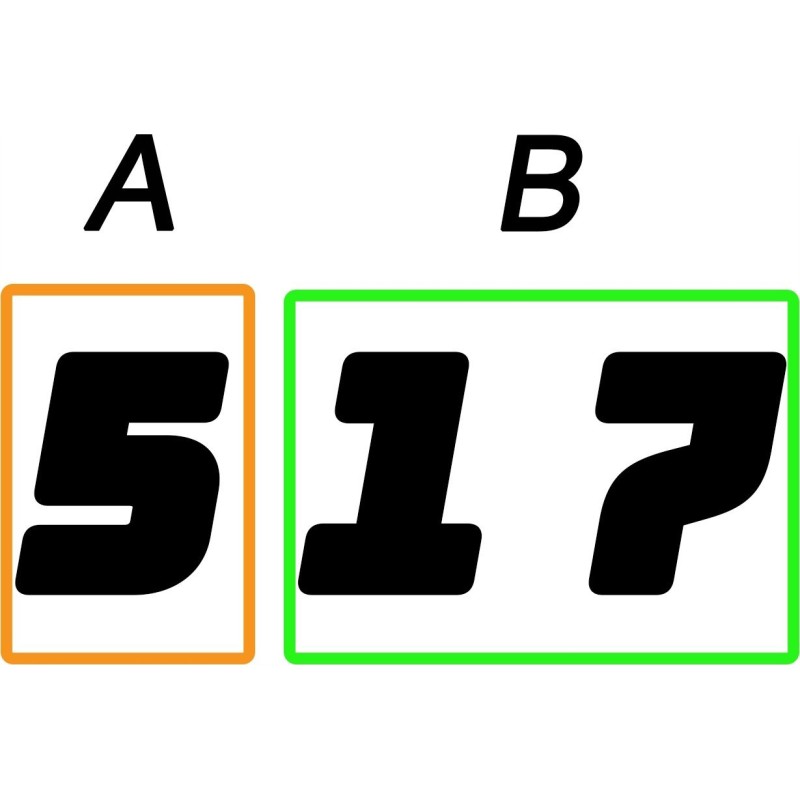 2️⃣ Die letzten beiden Ziffern (B) – geben die Größe der Düsenöffnung und die Farbdichte an. Je höher die Zahl, desto dichter die Farbe. Beispielsweise steht „517“ für eine Düse mit einer Strahlbreite von 25 cm und einem Durchmesser der Düsenöffnung von 0,017 Zoll.