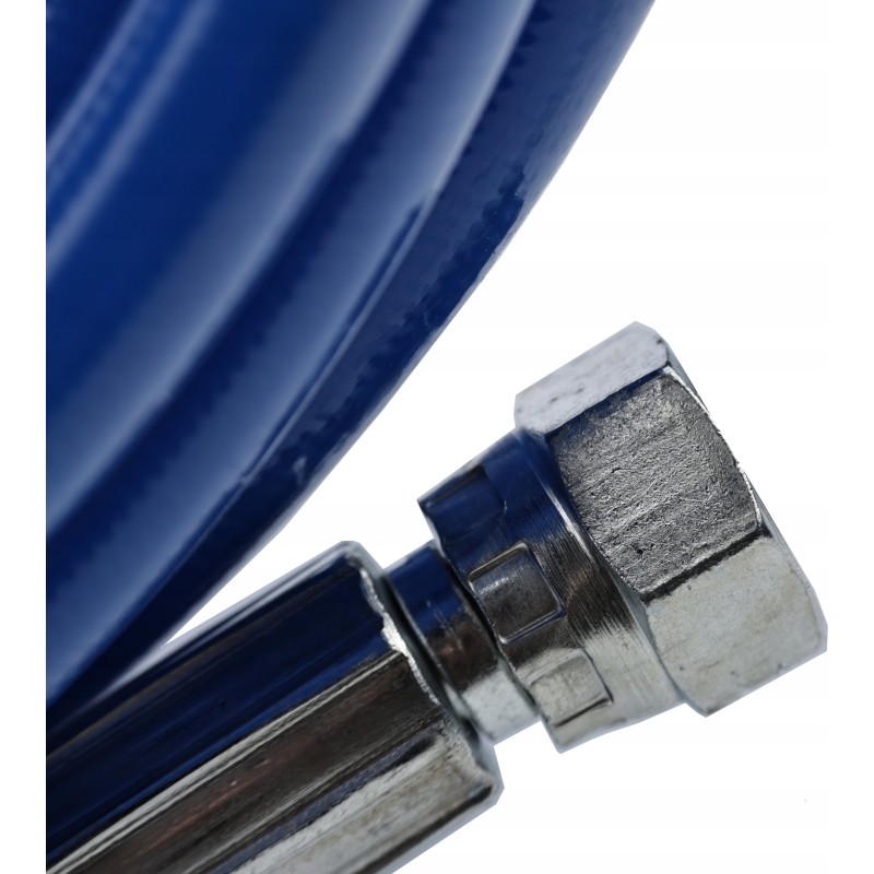 Dank dieser Eigenschaften ist der 45 m lange, hellblaue TPU-Schlauch für Farbspritzgeräte ein unverzichtbares Werkzeug, das beim Streichen für Strapazierfähigkeit, Flexibilität und Präzision sorgt.