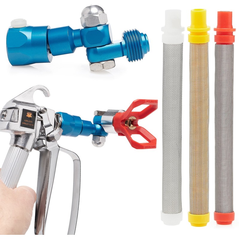 Im Lieferumfang enthalten sind vier Lackierdüsen (Modell 311, 517, 525, 215), eine Spritzpistole, drei zusätzliche Stabfilter, ein universelles CLEAN SHOT-Ventil, Spritzlanzen mit einer Länge von 50 cm und 75 cm sowie einen 8 m langen Schlauch. Dank dieser umfassenden Lösung sind Sie sofort nach dem Kauf bereit zum Streichen.