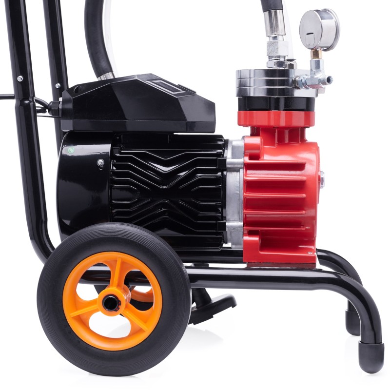 Der 3500-W-Motor sorgt für hohe Arbeitsleistung, und der maximale Arbeitsdruck von 230 bar ermöglicht eine präzise Farbverteilung auf verschiedenen Oberflächen. Dadurch bewährt sich das Gerät auch unter schwierigen Bedingungen hervorragend.